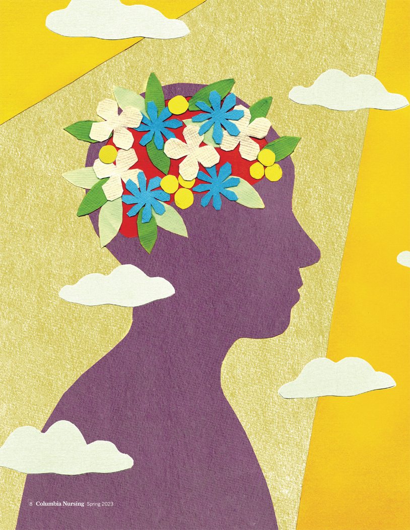 Cover and interior illustration for Columbia Nursing Spring 2023