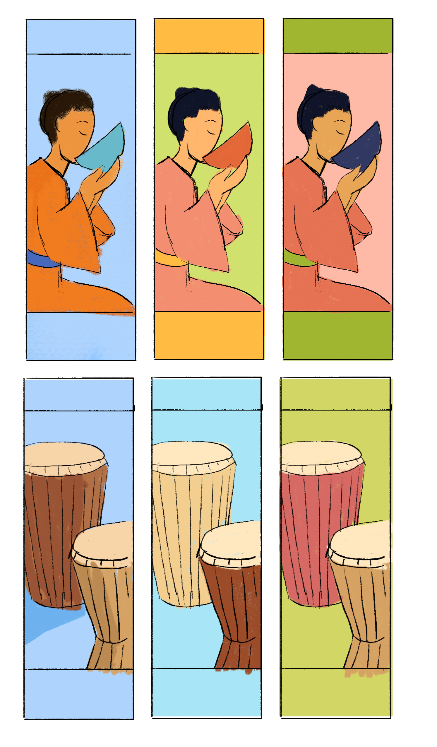 These illustrations were created for the Duxbury Art Complex Museum. They wanted a series of banners to be used in their parking lot to advertise some of the programs they host. I started with sketches for the different programs and nature from the area and moved onto color sketches. When creating these illustrations, I made cut paper pieces and scanned them individually due to their large size. I put together the final images in photoshop from the scanned pieces and added the museum's logo and text.